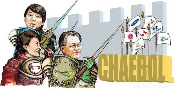 Biếm họa về cuộc chiến với các chaebol Hàn Quốc. Ảnh: KOREA HERALD