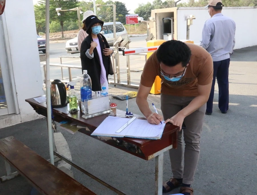 Khi ra vào KTX, sinh viên phải cam kết thực hiện phòng chống dịch như khai báo y tế, khử khuẩn, giữ khoảng cách, đeo khẩu trang…