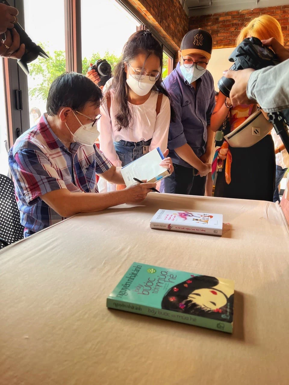 Nhà văn Nguyễn Nhật Ánh kí tặng sách cho người hâm mộ. Ảnh: CTV