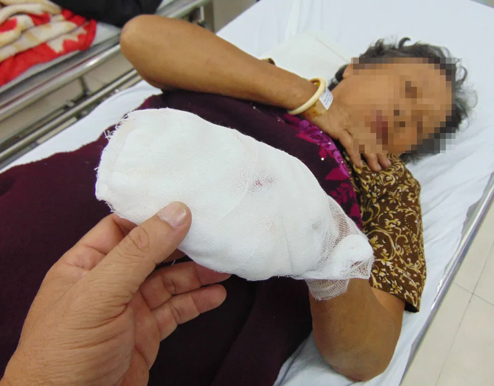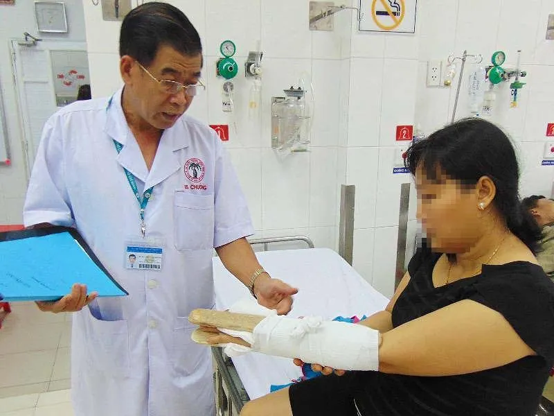 BS Nguyễn Vạn Chưởng cho biết bàn tay trái bà L. bị dập một phần mô, đốt giữa ngón ba bị gãy. Sau khi phẫu thuật, bàn tay trái bà L. ít nhiều ảnh hưởng chức năng cầm, nắm.