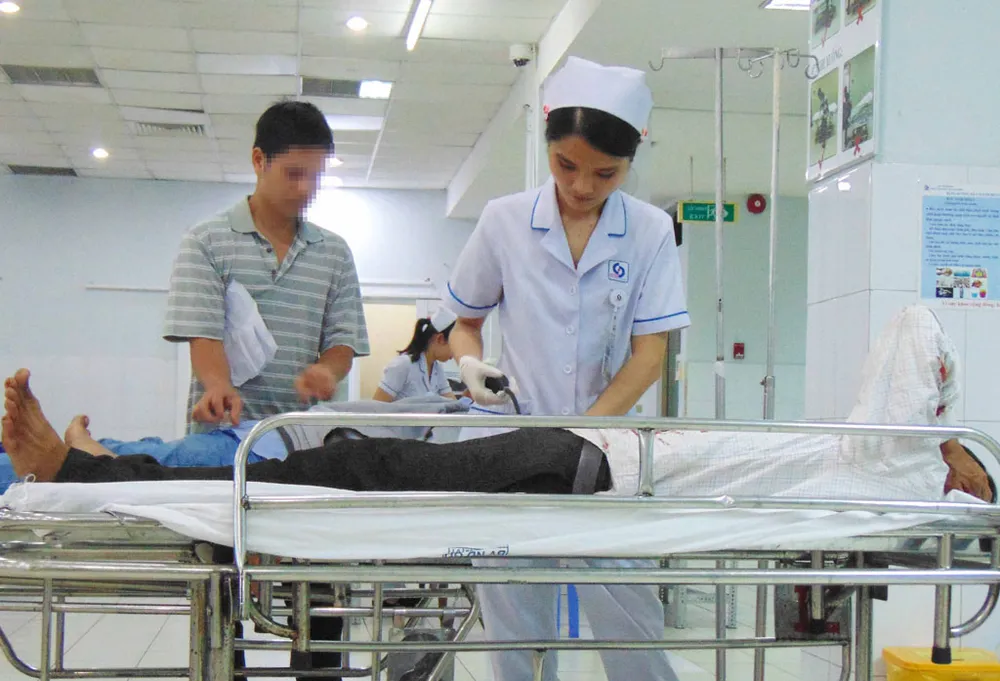 Sau giao thừa vài phút, ông VVQ (62 tuổi, ở TP.HCM) được người nhà đưa vào khoa Cấp cứu BV Nhân dân Gia Định trong tình trạng đầu chảy máu do rách da.