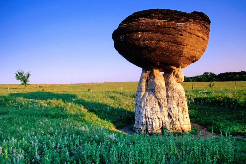 Công viên Đá Nấm, nằm ở khu Smoky Hills, Kansas, Mỹ, nổi tiếng với những khối đá hình nấm với phần trên to gấp nhiều lần phía dưới. Các khối đá này hình thành do sự xói mòn và các hoạt động thời tiết.