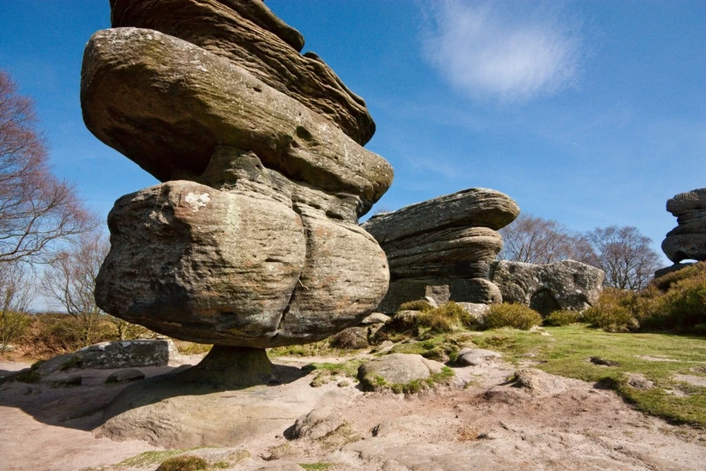 Tảng Idol, Brimham Moor, North Yorkshire, Ảnh: Khu vực Brimham Moor có rất nhiều tảng đá thăng bằng có hình dạng kỳ lạ, nhưng nổi tiếng nhất là tảng Idol. Với khối lượng ước tính 200 tần, tảng đá khổng lồ này nằm trên một tảng đá nhỏ có dạng kim tự tháp