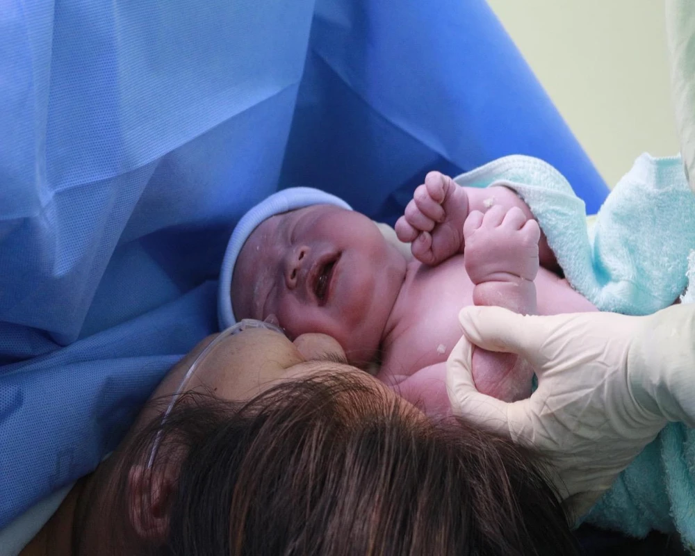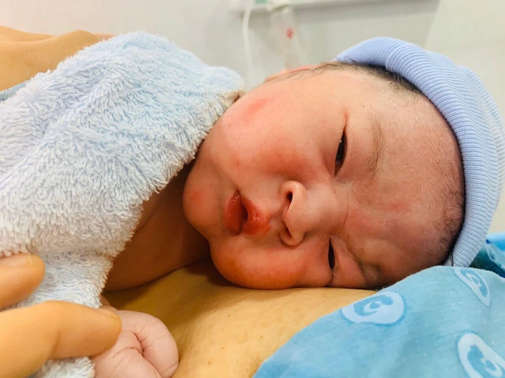 Khoảnh khắc đáng nhớ của bé chào đời đầu năm Canh Tý 2020. Ảnh: Bệnh viện cung cấp