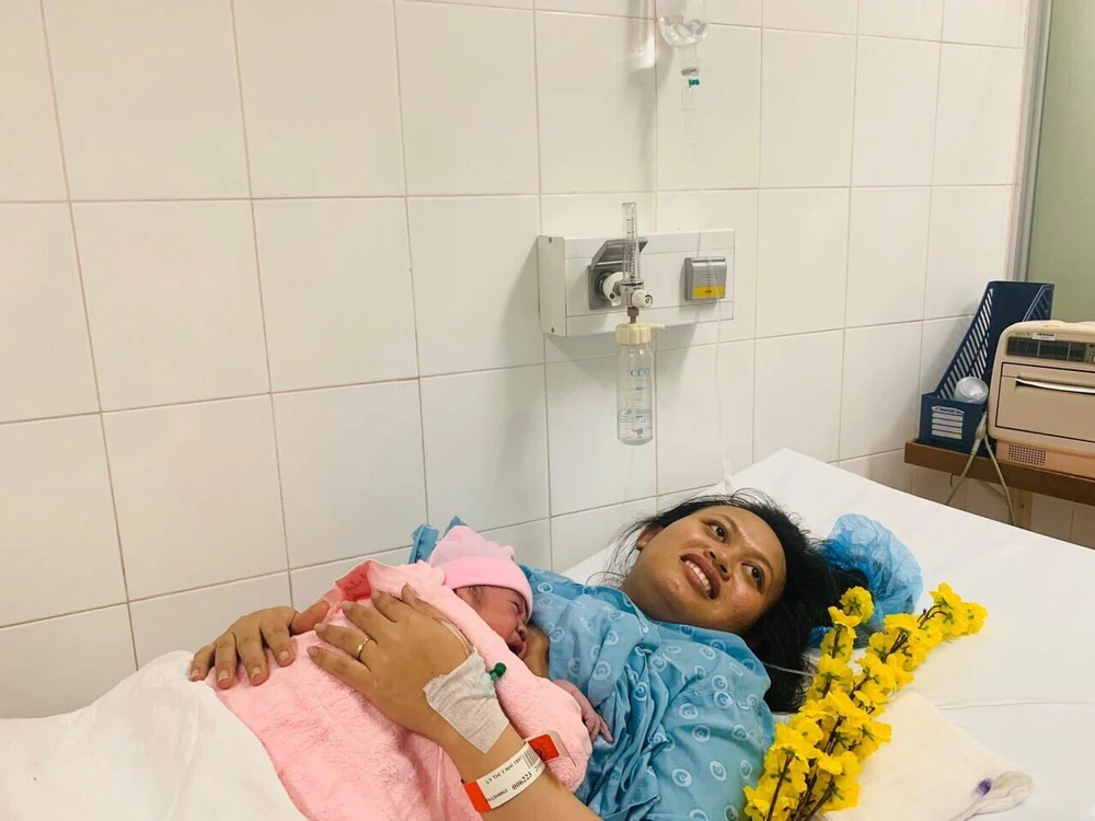 Một sản phụ hạnh phúc khi sinh con. Ảnh: Bệnh viện cung cấp