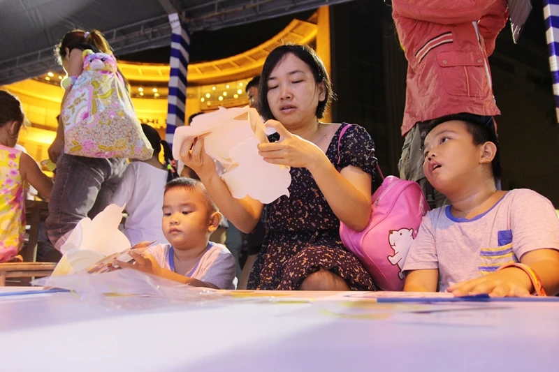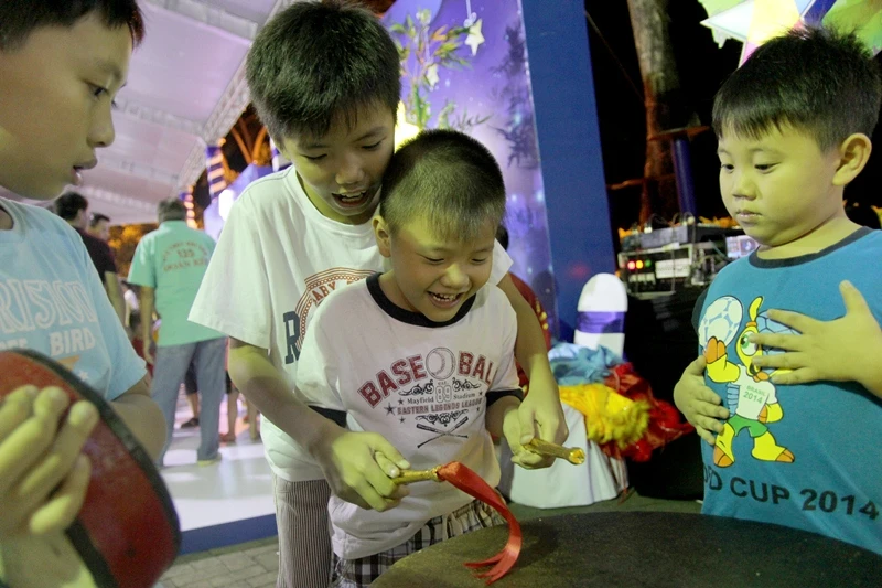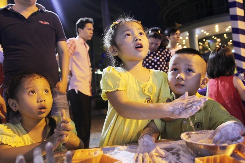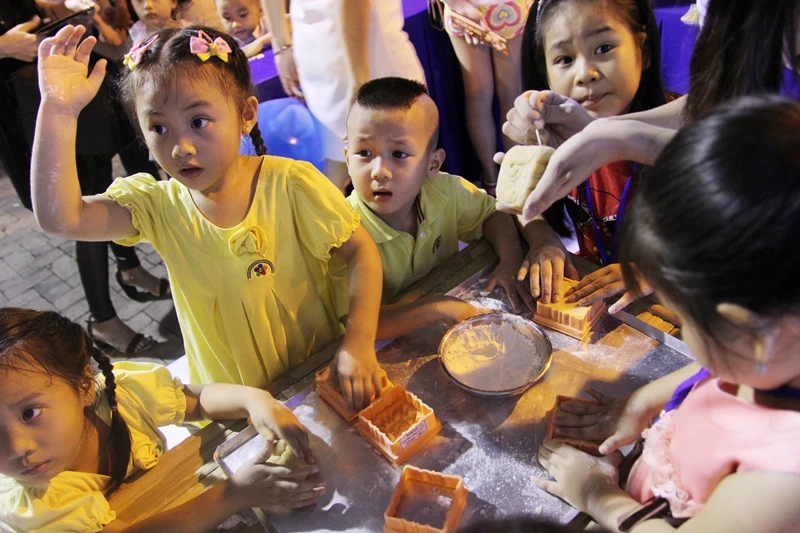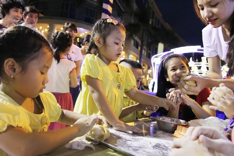 Đến tham gia chương trình, các em nhỏ cùng gia đình không chỉ được ngắm phố lồng đèn hoành tráng mà còn được tự tay làm nên những chiếc bánh trung thu xinh xắn mang về nhà. Các em còn được viết thiệp chúc mừng trung thu, được hóa thân vào vai ông lân và tự tay xếp lồng đèn giấy đi chơi trung thu.