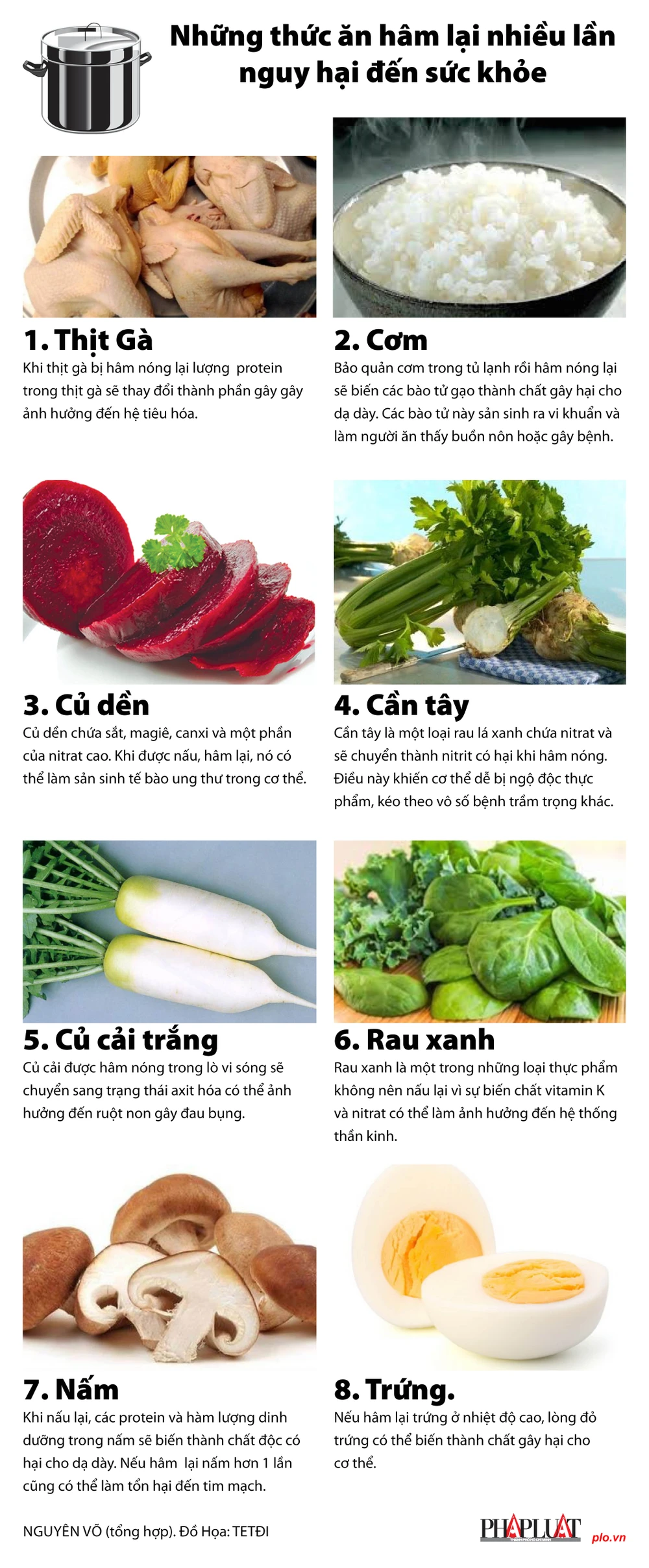 (PLO)- Để tiết kiệm thời gian nấu nướng và tiết kiệm thức ăn nhiều bà nội trợ thường hâm đi hâm lại nhiều loại thức ăn để dùng lại. Nhưng có một số loại thức ăn hâm lại nhiều lần rất ảnh hưởng đến sức khỏe.