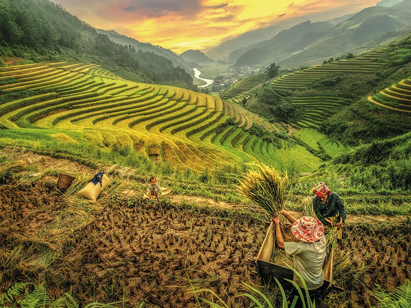 Nụ cười của người dân vùng thung lũng bên lúa chín vàng. Ảnh: SHU