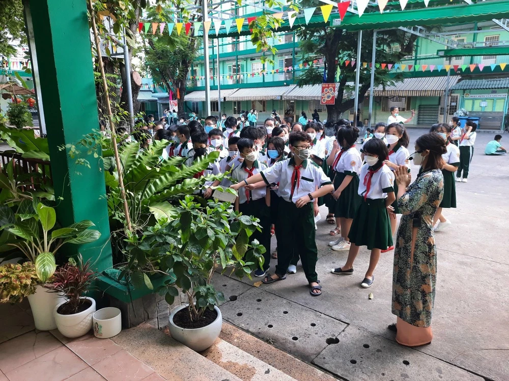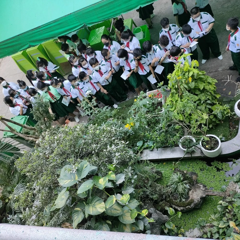 Mới đây, ngay sau khi TP.HCM cho học sinh khối lớp 6 đi học trực tiếp trở lại kể từ ngày 14-2, các em học sinh lớp 6 trường THCS Hà Huy Tập (quận Bình Thạnh, TP.HCM) đã có những tiết học trải nghiệm thực tế ngay trên chính sân trường.