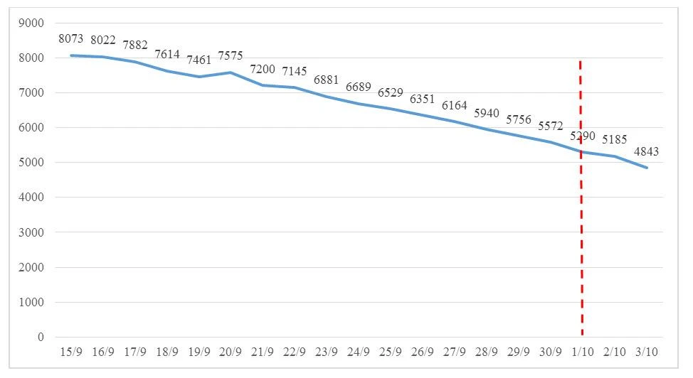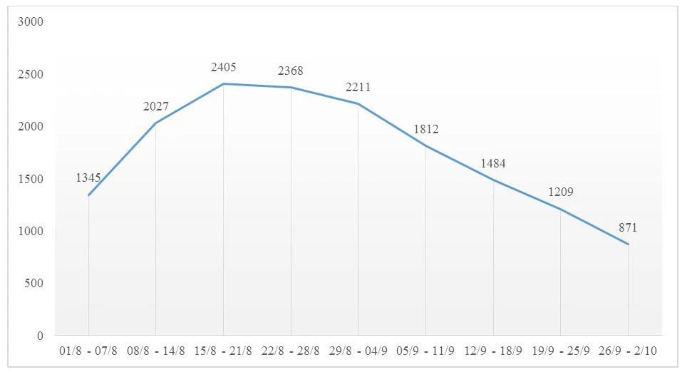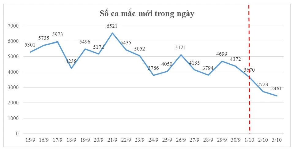 Từ ngày 1-10, số ca mắc mới trong ngày tiếp tục có xu hướng giảm dần, tuy nhiên số ca bệnh nặng ở tầng 3 vẫn còn cao nên tỉ lệ tử vong ở tầng này vẫn sẽ còn dao động ở mức cao.