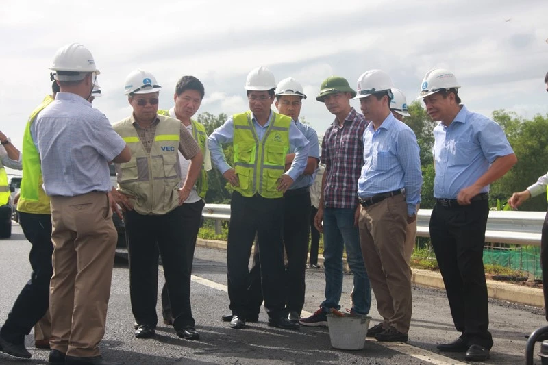 Lãnh đạo VEC trong một lần kiểm tra hư hỏng trên cao tốc Đà Nẵng - Quảng Ngãi. Ảnh: TẤN VIỆT