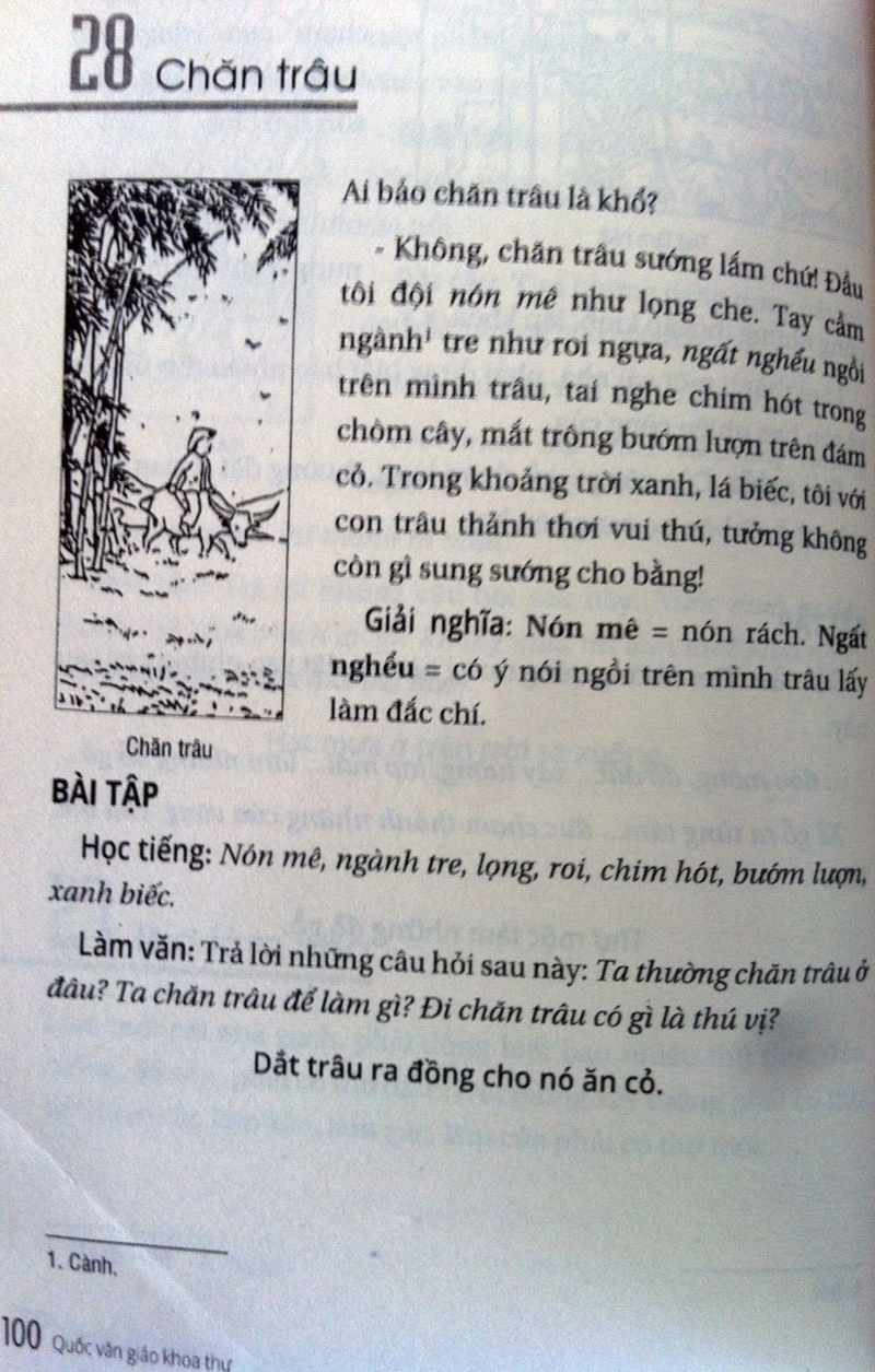 Bài văn Chăn trâu trong Quốc văn giáo khoa thư tạo cảm hứng cho nhà thơ Giang Nam sáng tác bài thơ Quê hương