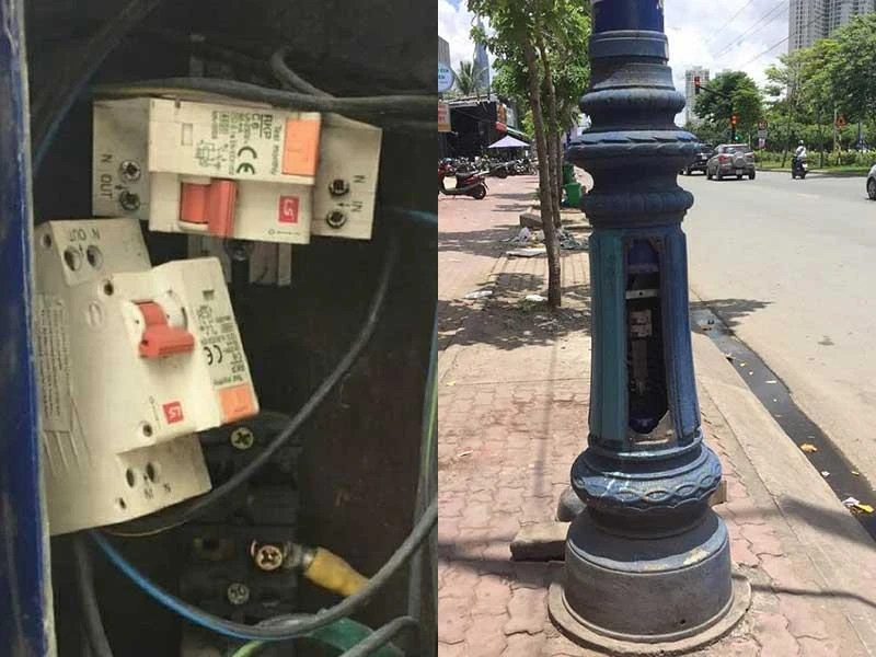 Thêm vào đó, dây điện trong trụ không được che chắn, lộ ra ngoài, vào ngày mưa rất dễ gây chập điện, rò rỉ điện, gây hỏng các bóng đèn chiếu sáng.