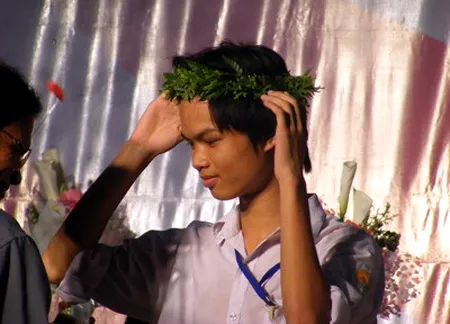 Mạnh Tấn với vòng nguyệt quế của Tiếp sức tài năng 2007 - Quốc học Huế. Ảnh: internet