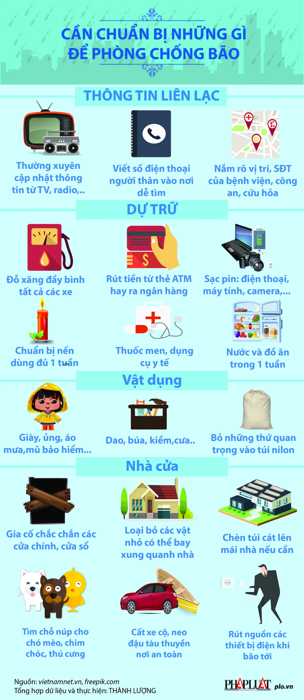 (PLO)- Sáng 13-10, tâm bão số 11 ở trên vùng biển tây bắc đảo Luzon, cách quần đảo Hoàng Sa khoảng 880km về phía đông đông bắc. Dưới đây là những việc làm cần thiết để phòng chống bão, làm giảm thiệt hại về người và của.