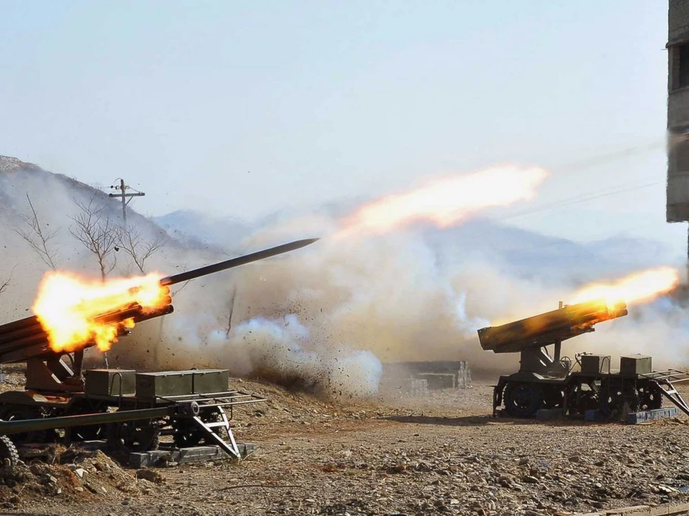Hệ thống tên lửa phóng loạt cỡ nòng 240 mm trong hình, thậm chí có thể đánh trúng thủ đô Seoul của Hàn Quốc.