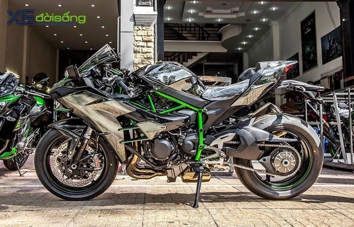 Nhắc tới phân khúc 1.000 phân khối không thể không kể tới Kawasaki Ninja H2 được nhập về Việt Nam khoảng đầu tháng 4 với mức giá gây sốc, đạt 1,1 tỉ đồng. Khi tiếp cận với Kawasaki Ninja H2, ấn tượng đầu tiên là thiết kế cực kỳ táo bạo, hiếu chiến và có phần kỳ quái. Đặc biệt hơn, Ninja H2 có lớp sơn đen tráng bạc bóng loáng như gương ở một phần mặt nạ, ốp chắn hai bên thân xe, bình xăng và phần đuôi. Kawasaki cho biết công nghệ sơn độc đáo này trên Ninja H2 là lần đầu tiên được ứng dụng trên cả xe hơi và xe máy. Ngoài ra, Ninja H2 cũng rất khác biệt so với các mẫu siêu mô tô thể thao tốc độ trước nay ở chỗ thân xe có nhiều chi tiết rối mắt, mặc dù vậy chúng là các giải pháp để giúp tối ưu đặc tính khí động học cho xe.