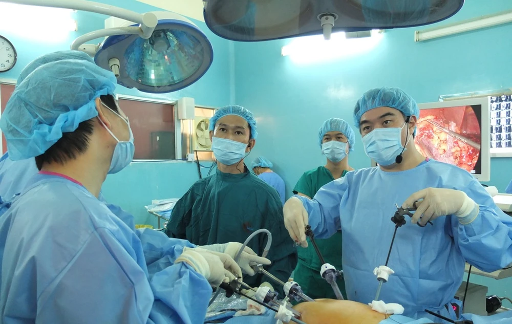 Ca phẫu thuật điều trị ung thư dạ dày sử dụng chất nhuộm màu ICG. Ảnh: HL