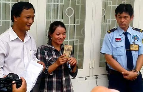 4 giờ 30 chiều 2-6, bước ra từ phòng họp trao trả số tiền 5 triệu yen, chị Huỳnh Thị Ánh Hồng ôm bọc tiền đi ra. Đó cũng là khoảnh khắc chị chính thức là chủ sở hữu của khoản tiền 5 triệu yen vợ chồng chị nhặt được từ chiếc loa thùng cũ sau hơn một năm hồi hộp chờ đợi với nhiều tình huống phát sinh khá “ly kỳ”.