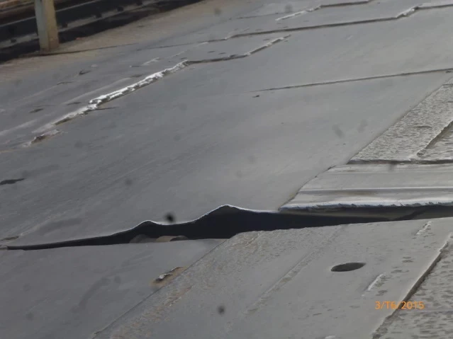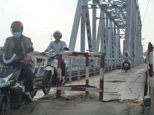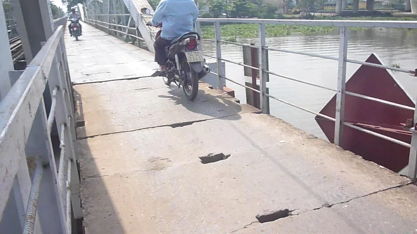 Tuy nhiên, bề mặt cầu xuống cấp trầm trọng.Những mảnh sắt bị bung, gãy tạo những góc nhọn