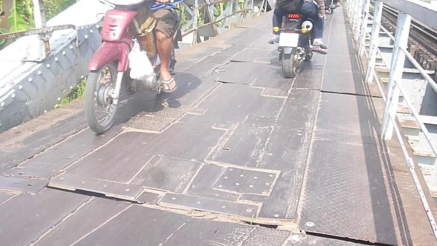 Cây cầu nhỏ nằm song song với đường ray xe lửa có làn chắn hai bên lỏng lẻo, không chắc chắn, bề mặt cầu mỏng và được ráp từ nhiều mảng sắt. Điều đáng nói là những mảng sắt này bị bung, gãy tạo nên những góc nhọn gây nguy hiểm cho người đi đường. Đặc biệt, mỗi khi tàu đi qua cây cầu rung lắc dữ dội, trong khi đó xe máy, xe đạp và cả người đi bộ vẫn cứ tấp nập qua lại trên cây cầu này.