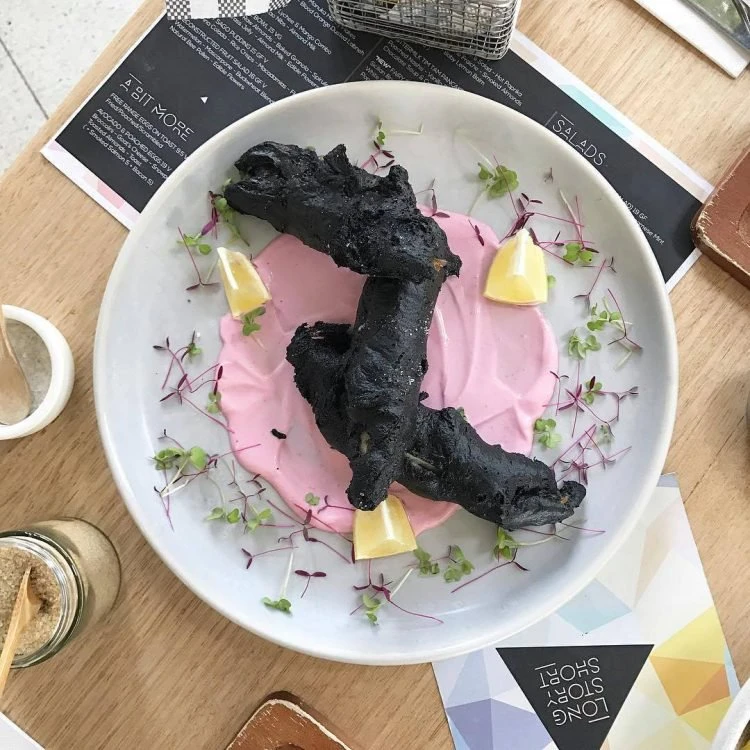 Nhìn nó trông như những món ăn bị cháy khét . Ảnh: Long Story Short Cafe facebook