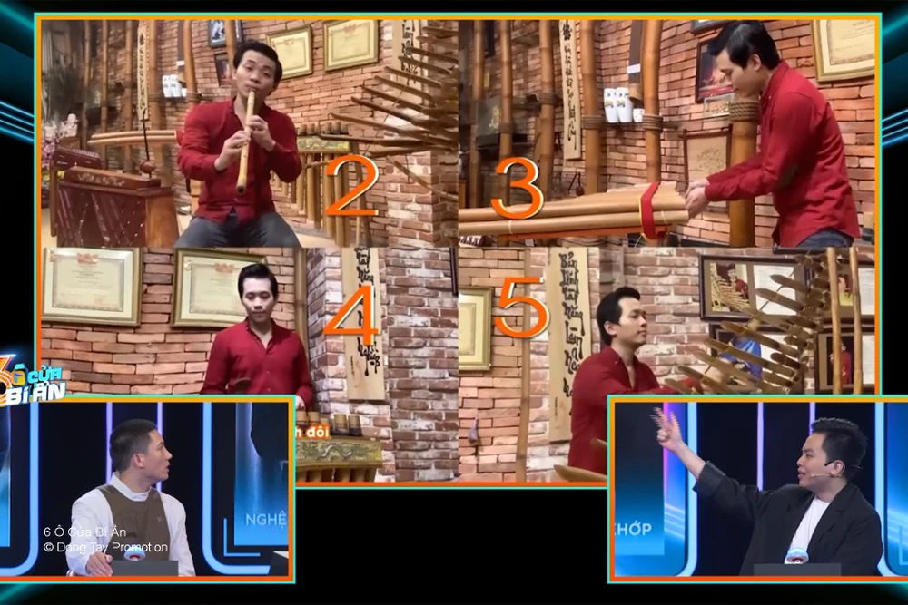 Nhật Minh tham gia 6 ô cửa bí ẩn với các tiết mục biểu diễn thổi sáo và chơi các nhạc cụ dân tộc, thần thái của anh vô cùng tự nhiên, thư giãn, tạo cảm giác thoải mái, dễ chịu cho người xem.