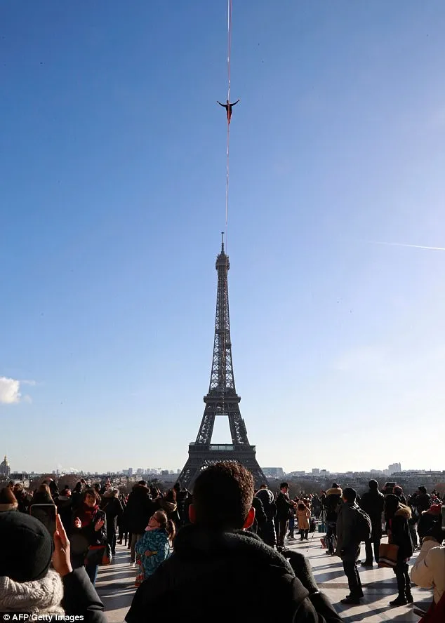 Nín thở với màn đi dây thăng bằng đến tháp Eiffel