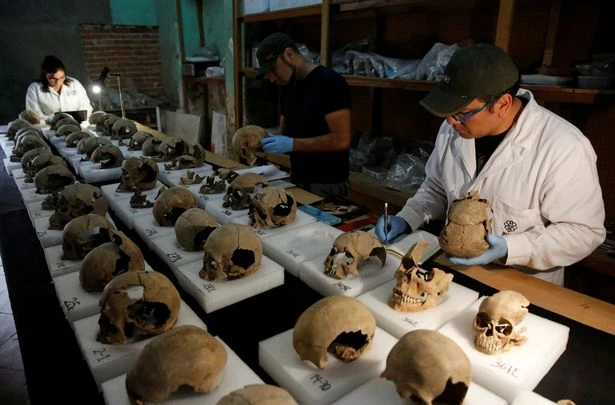 Khoảng 675 hộp sọ của đàn ông, phụ nữ và trẻ em được khai quật. Ảnh: REUTERS
