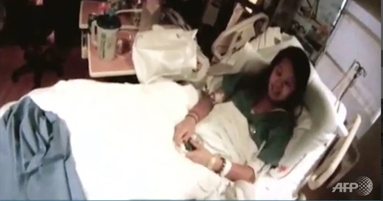 Ảnh chụp bệnh nhân Nina Phạm tươi cười đầy lạc quan trong phòng bệnh (Ảnh: AFP)