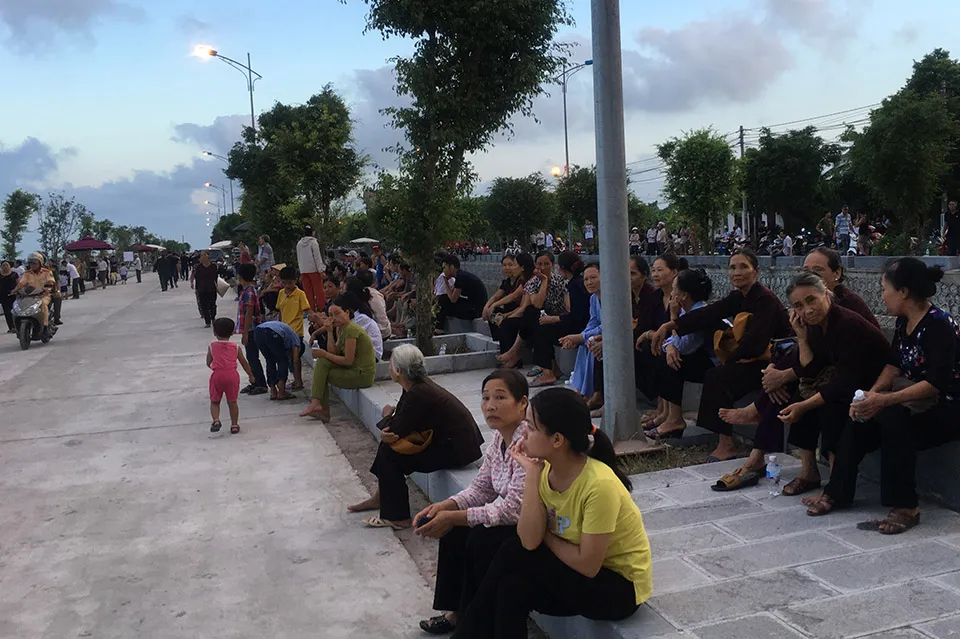 Chiều tối 26-9, nhiều người dân vẫn cố nán lại, hướng về nơi Chủ tịch nước sẽ an nghỉ tại quê nhà ở xã Quang Thiện, huyện Kim Sơn, Ninh Bình. Ảnh: Đ.TRUNG