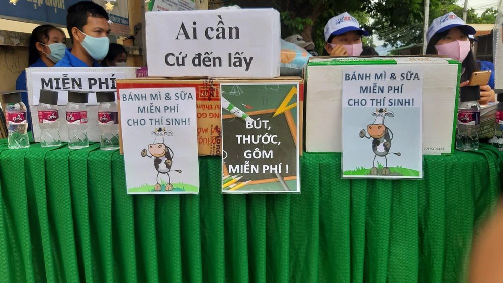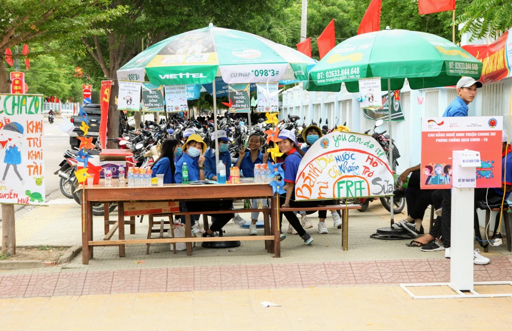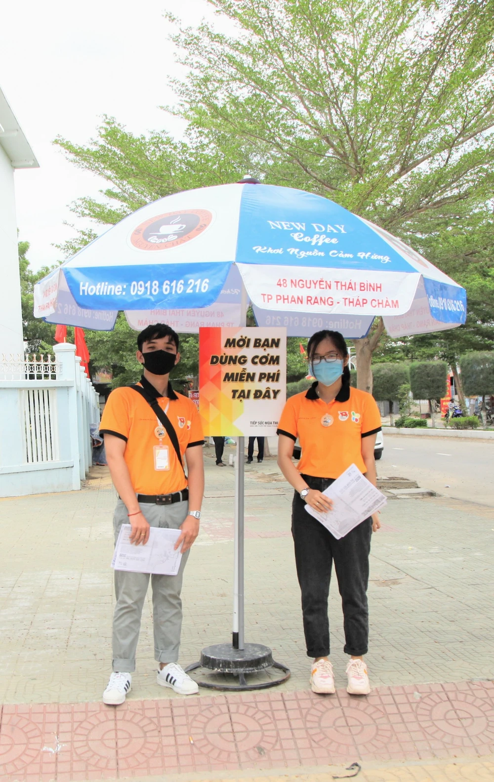 Tỉnh Đoàn Ninh Thuận đã tổ chức và điều phối 474 tình nguyện viên của các trường Cao đẳng nghề, Cao đẳng sư phạm, huyện đoàn, đoàn cơ sở các địa phương và các trường và đặc biệt có sự tham gia của nhóm cựu học sinh Ninh Thuận tại thành phố Hồ Chí Minh (CTC) về nghỉ hè cũng tích cực tham gia hỗ trợ cho các thí sinh. Hàng trăm ổ bánh mỳ, 421 xuất cơm trưa. 90 chỗ nghỉ trưa, hàng chục thùng sữa, nước khoáng.. Có điểm còn hỗ trợ cả bút, thước, tẩy cho các thí sinh.