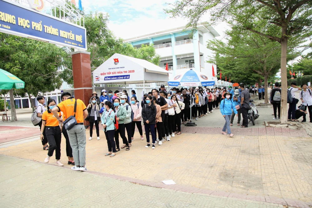 Sáng 9-8, tại 14 điểm thi ở TP Phan Rang-Tháp Chàm, các huyện Ninh Hải, Ninh Phước, Ninh Sơn, Bác Ái, Thuận Bắc. 5.755 thí sinh tại Ninh Thuận bước vào ngày thi đầu tiên của kỳ thi tốt nghiệp THPT đợt 1. Theo báo cáo của Sở GD&ĐT Ninh Thuận, trong kỳ năm nay, toàn tỉnh có 5.757 thí sinh đăng ký dự thi.