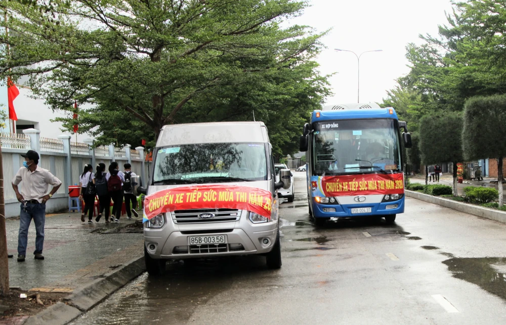 Tỉnh Đoàn Ninh Thuận cũng tổ chức 57 chuyến xe hỗ trợ dọc đường. Sở giao thông vận tải cũng hỗ trợ 2 xe 30 chỗ và 2 xe 16 chỗ đưa đón học sinh nhà ở xa trong suốt quá trình thi. Bạn Nguyễn Quốc Bảo Duy - sinh viên năm thứ 2 thành viên của nhóm Cựu học sinh Ninh Thuận tại TP Hồ Chí Minh chia sẻ "Những năm trước tôi cũng từng là thí sinh thi, tôi cũng được các anh chị đi trước hỗ trợ. Năm nay cùng các bạn làm tình nguyện hỗ trợ cho các em, cũng mong các em được tạo điều kiện tốt nhất để thi đạt kết quả tốt".