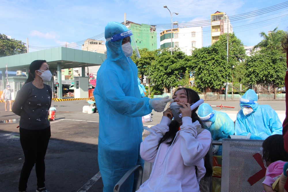 Tại bến xe, lực lượng y tế thuộc tỉnh Ninh Thuận sẽ phụ trách lấy mẫu test nhanh người dân. Sau khi có kết quả âm tính, người dân được phép di chuyển ra xe để về quê.