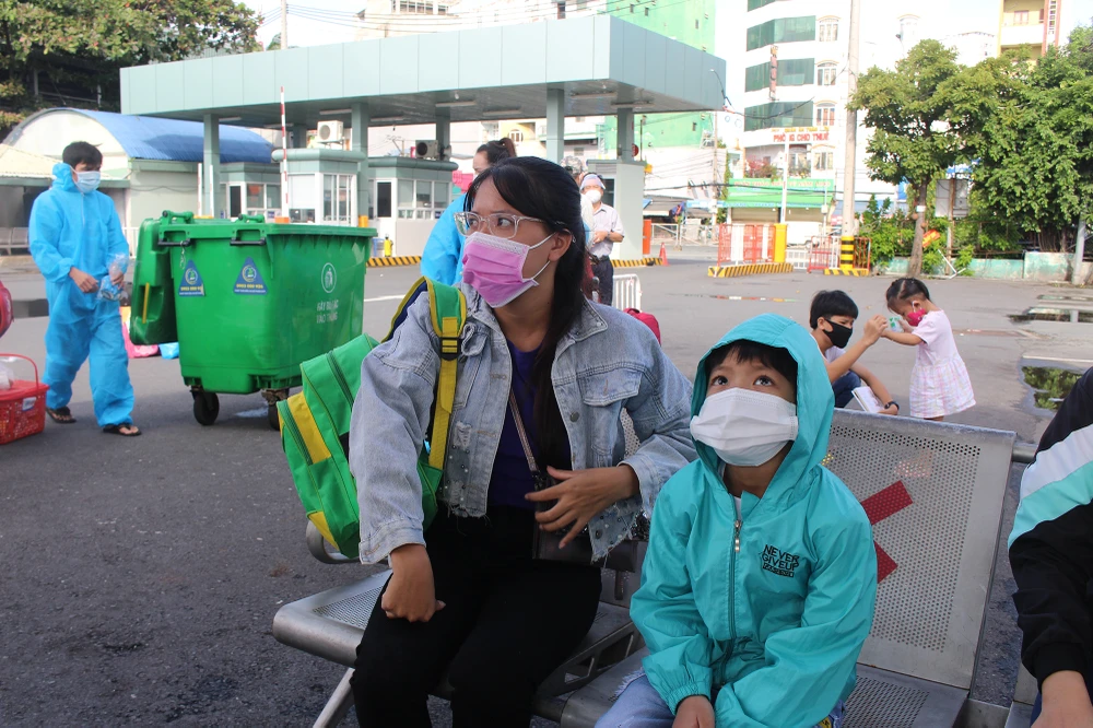 Trong buổi sáng cùng ngày, hai mẹ con quê tỉnh Ninh Thuận không có tên trong danh sách về đợt này nhưng đã đến bến xe cũng được hỗ trợ lấy mẫu và đưa về quê.