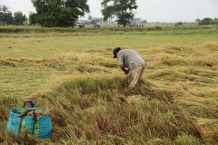 Do ảnh hưởng áp thấp nhiệt đới, gây mưa trong nhiều ngày qua, nhiều diện tích lúa đang vào mùa thu hoạch của bà con nông dân tỉnh Ninh Thuận đã bị ngã đổ, gây thiệt hại lớn.