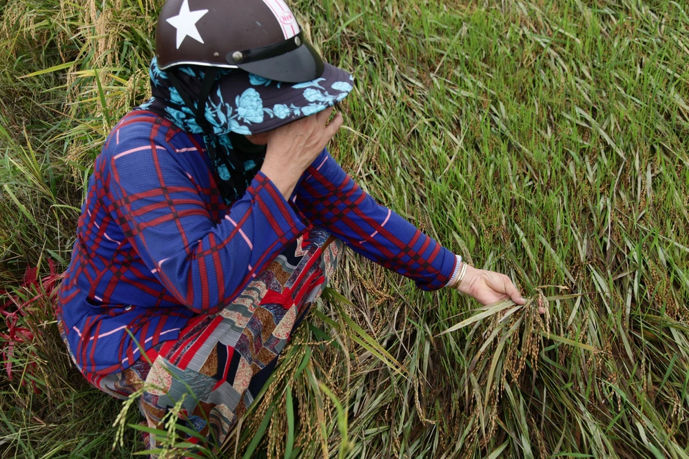 Mặc dù ba sào lúa đã nằm rạp xuống và nảy mầm, không thu hoạch được, nhưng có lẽ vì xót của và công sức mấy tháng trời chăm sóc, nên bà Từ Thị Thiệt cũng ở thôn Thành Tín vẫn ra thăm ruộng. Bà xót xa nói: “Bây giờ thì bỏ luôn rồi, bán cho vịt chạy đồng họ cũng không mua, vì nhiều nơi bị như vậy lắm”.