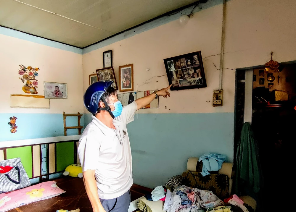 Ông Nguyễn Thành Công lo lắng về những vết nứt trong nhà mình