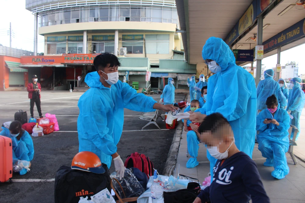 Sáng 22-9, Tổ công tác của tỉnh Ninh Thuận đã hoàn tất các thủ tục người dân, việc chuẩn bị đã được triển khai chặt chẽ đúng theo kế hoạch. Người dân đủ điều kiện về, được cấp đồ bảo hộ, khẩu trang, bao tay, kính chắn giọt bắn trước khi lên xe. Việc ăn uống trên đường đi, tổ đã chuẩn bị đồ ăn nhẹ như bánh mì, sữa, nước cho từng người dân.