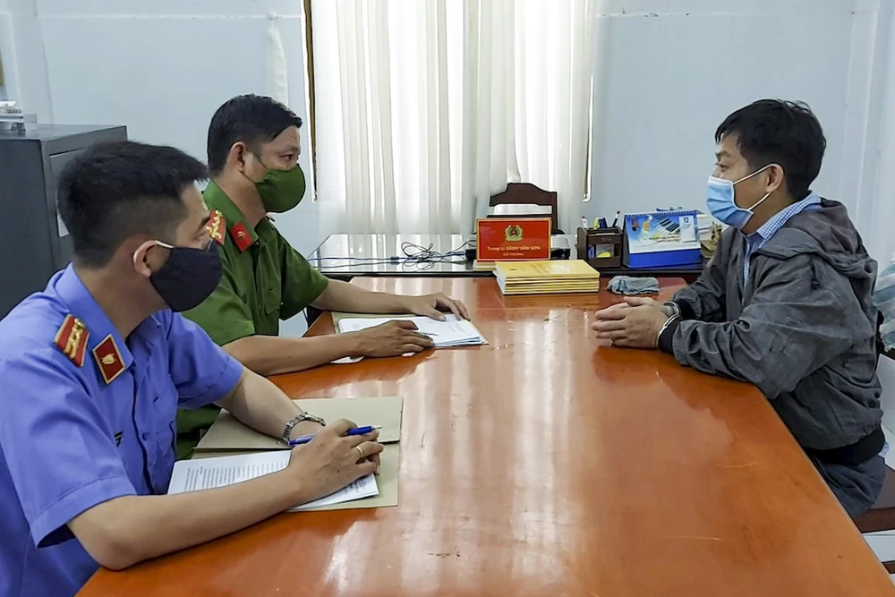 Trần Thanh Hoàng Anh tại cơ quan công an. Ảnh: CACC
