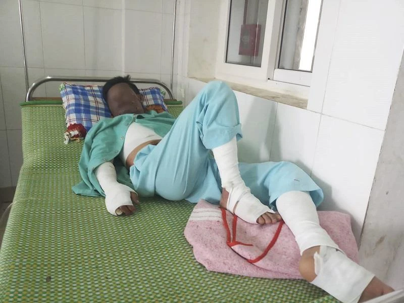 Nạn nhân nhập viện trong tình trạng đa vết thương vùng mặt, ngực, bụng, bỏng 30% độ I, II, mặt với cổ bỏng tia lửa điện, tay chân hai bên bỏng nước sôi...