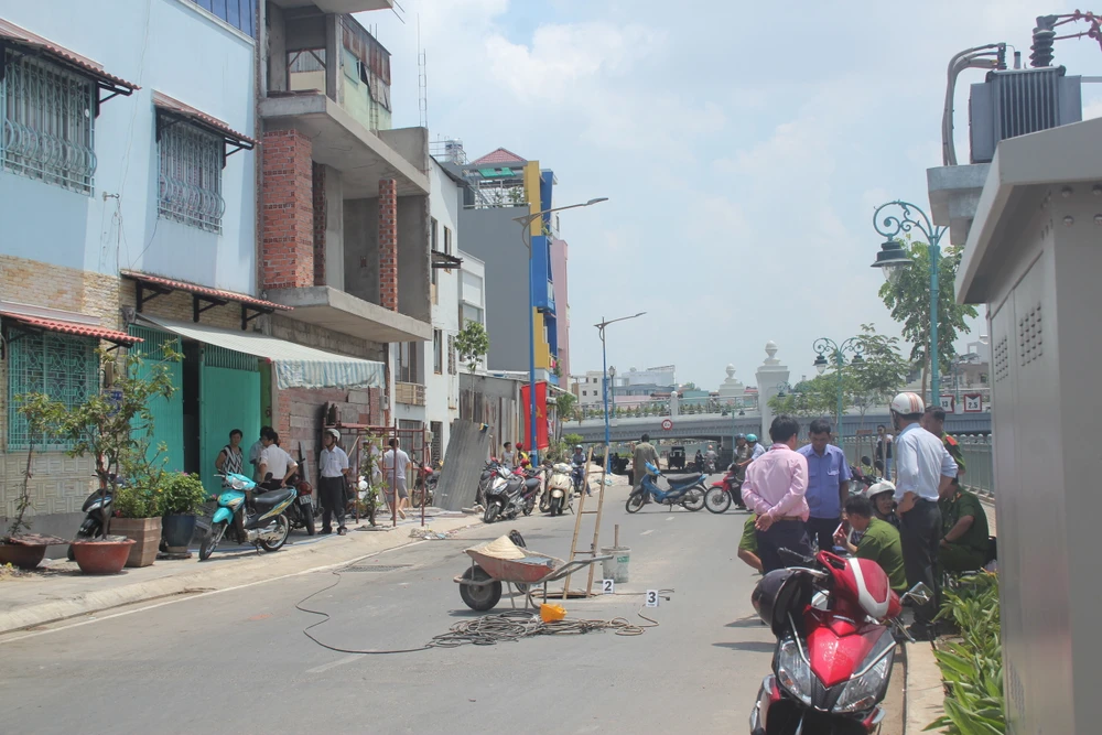 Ghi nhận tại hiện trường, một thang gỗ được đặt xuống lòng hố ga, trên miệng hố ga đang bật nắp có một cuộn dây diện nằm ngổn ngang. Một máy khoan điện được lực lượng chức năng lấy lên từ trong lòng hố ga.