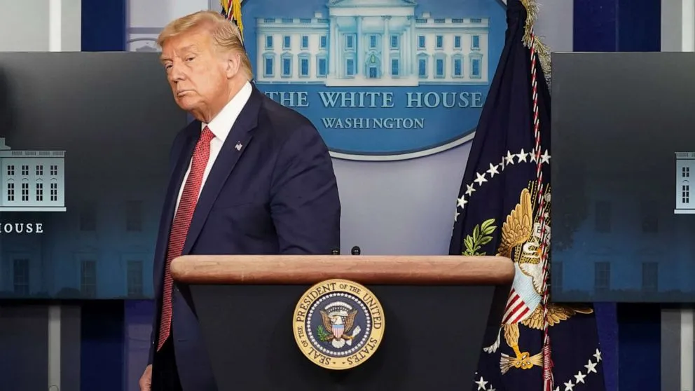 Tổng thống Mỹ Donald Trump rời khỏi cuộc họp báo do súng nổ bên ngoài Nhà Trắng hôm 10-8. Ảnh: Kevin Lamarque/REUTERS