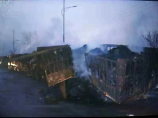 Một video được cho là quay từ hiện trường cho thấy hàng loạt xe đậu bên đường bốc cháy, các đám lửa lớn bùng phát dữ dội bên trong nhà máy này. Ít nhất 38 xe tải lớn và 12 ô tô bị thiêu rụi trong trận hỏa hoạn.