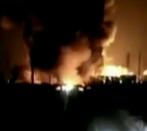 Đám cháy bùng phát dữ dội tại nhà máy hóa chất Trung Quốc. Ảnh: Express