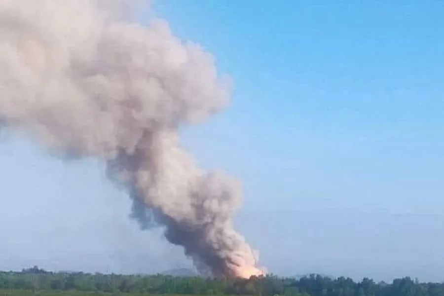 Sau tiếng nổ, cột khói bốc cao. Ảnh FB
