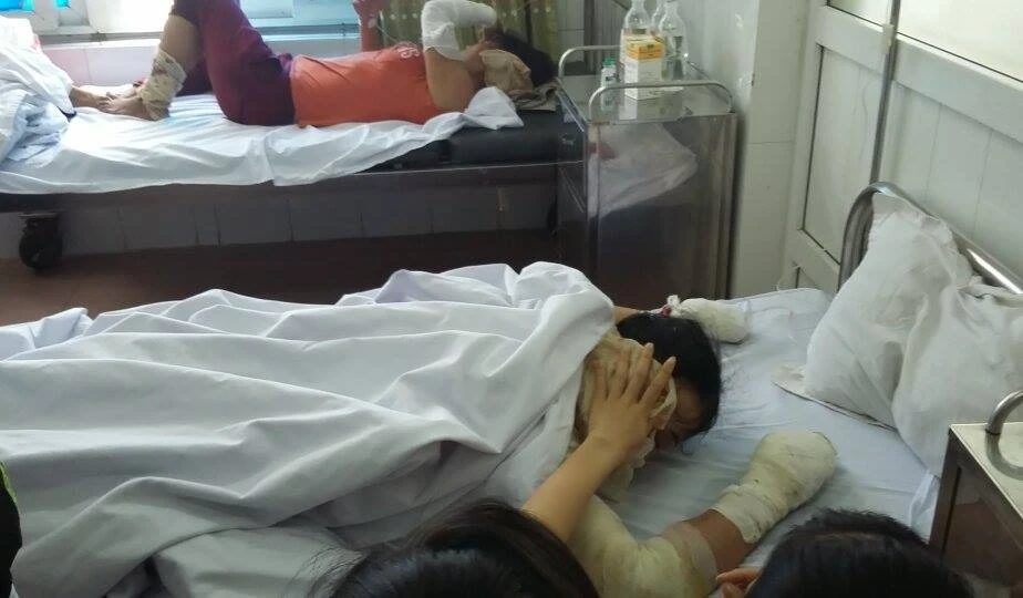 Tại bệnh viện, chị Nguyễn Thị Vân kể lại: Lúc đó hơn 9 giờ sáng, chúng tôi đang cắt giấy để ép ván thì nổ ống dẫn nhiệt trên cao rồi lửa cháy, hơi nóng xịt ra, lùa chúng tôi ngã rồi ngất xỉu. Khi tỉnh dậy hai tay tôi đã bị bỏng nặng.