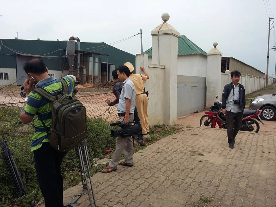 Bên trong sân công ty. Ảnh chụp qua hàng rào