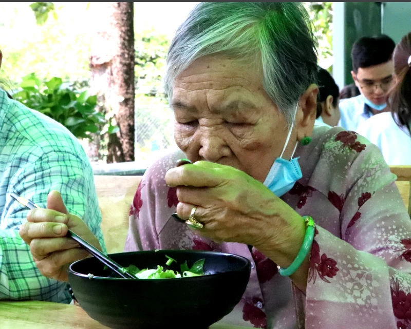 “Không phải chỉ được ăn miễn phí trưa nay đâu, tôi được BV hỗ trợ suất cơm trưa 0 đồng từ thứ Hai tới thứ Sáu mỗi tuần. Cơm ngon, thức ăn nhiều, tôi no tới tối luôn. Bữa cơm 0 đồng chứa nặng tình người mà BV Lê Văn Thịnh dành cho những người có cuộc sống còn nhiều khó khăn như tôi” – ông Bảy bộc bạch.